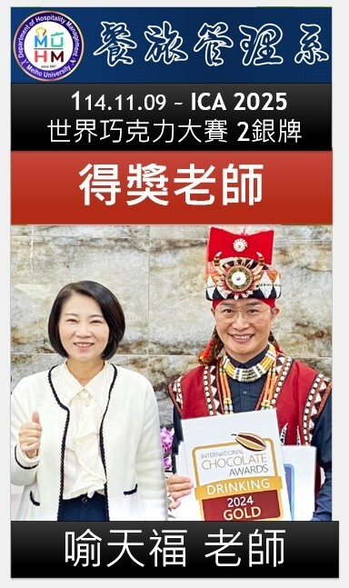 屏東可可登上世界舞台 餐旅管理系 喻天福老師以台灣可可勇奪2025世界巧克力大獎銀牌
