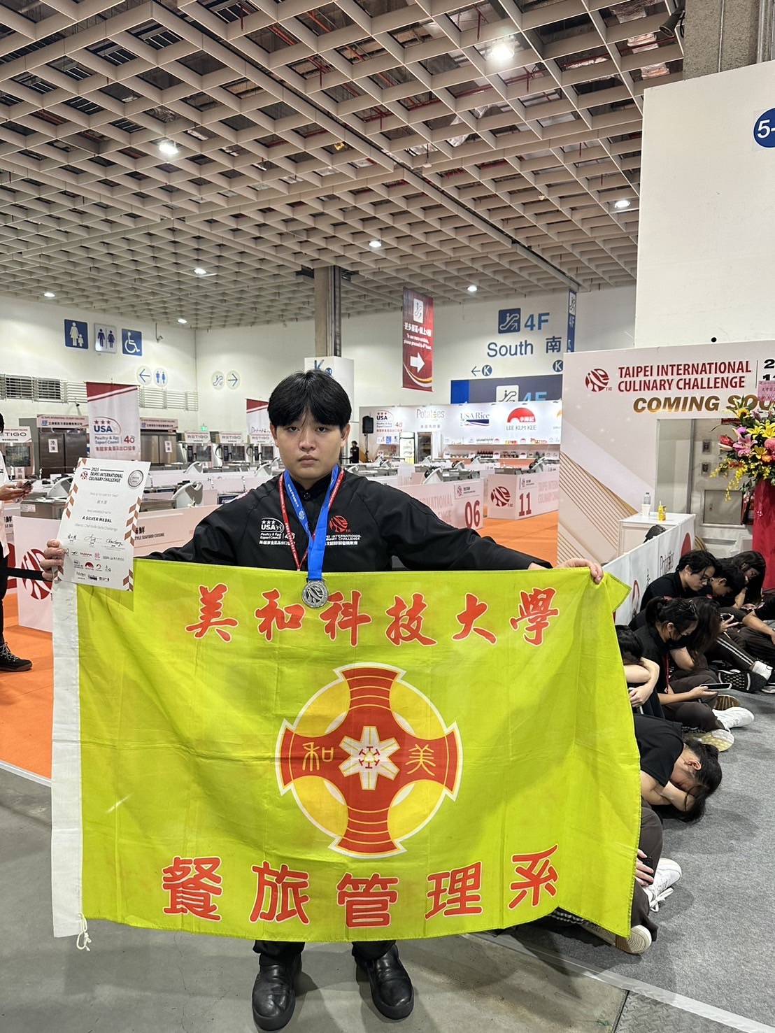 美和科大餐旅系參加2025 臺北國際廚藝挑戰賽五餐三甲黃木澤同學勇奪銀牌