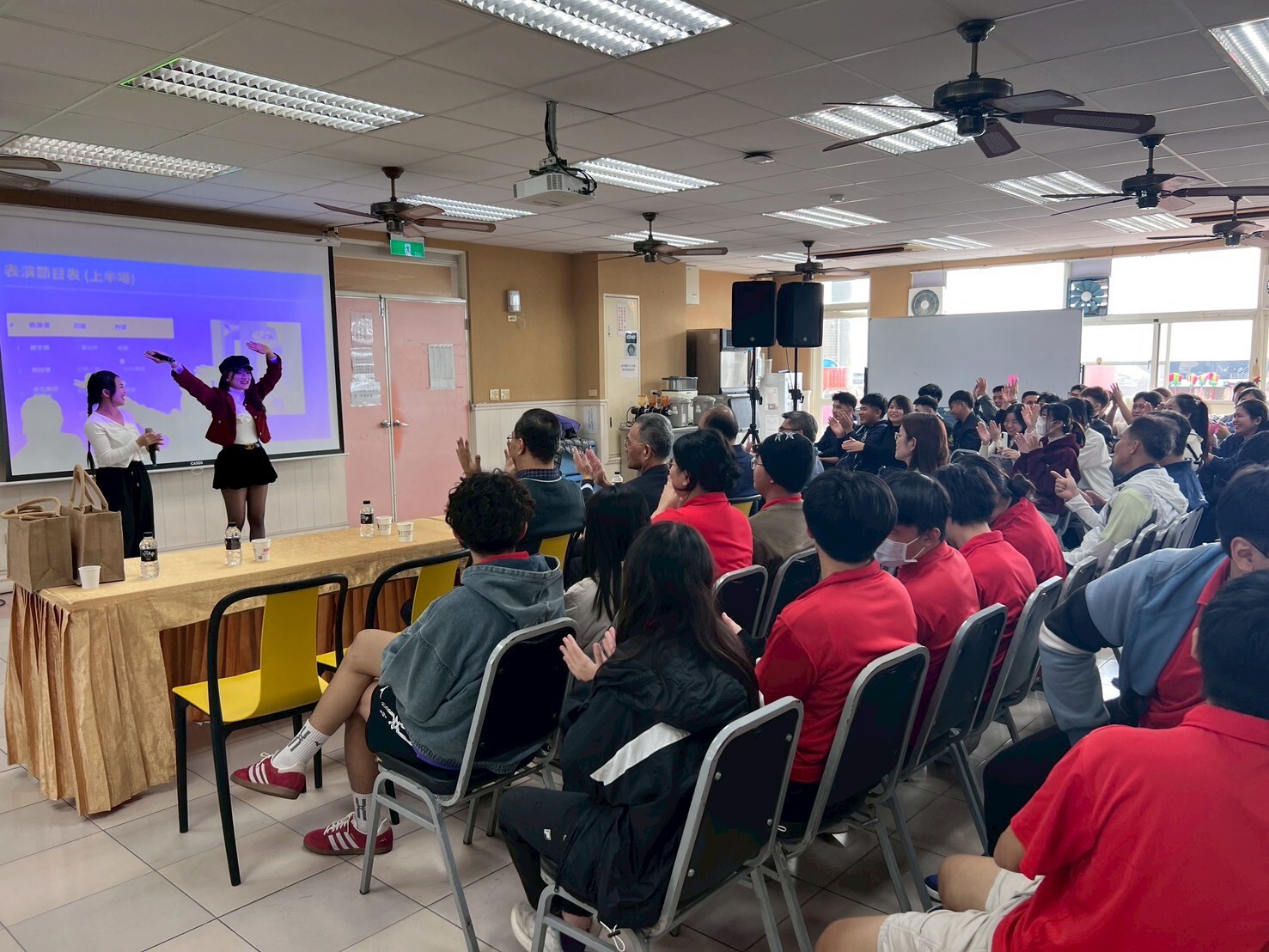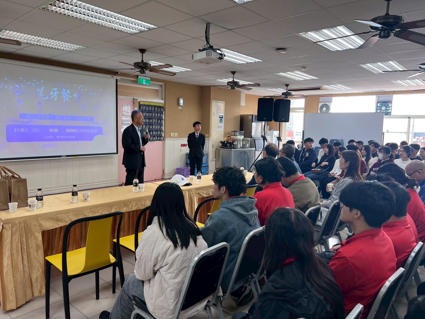 主辦單位為了讓師生盡情享受,特別準備了豐盛的「歐式自助餐」,現場菜色豐富,包含精緻壽司、熱食料理、可頌甜點與湯品等佳餚,讓參與的師生大飽口福。除了美食之外,現場更安排了精彩的表演環節 。由二餐四甲、五餐三甲、四餐一甲、五餐一甲以及國合餐一甲的同學們輪番上陣,帶來包括熱舞、綜合舞曲及深情演唱等多達8組的精彩節目,展現了餐旅系學生多才多藝的一面,現場掌聲與歡呼聲不斷,氣氛嗨翻全場。活動的最高潮莫過於備受期待的摸彩活動。系上老師們慷慨贊助了多項精選實用禮品與現金紅包,包括「金蓮老師獎」、「耀中老師獎」、「禎瑩老師獎」以及各式精美禮品與幸運刮刮樂 。此外上裕老師現場還送出價值數千元的超人氣「樂玩多寶可夢娃娃」及「野獸國史迪奇存錢筒公仔」等特別大獎,讓中獎同學驚喜連連。活動尾聲,餐旅管理系系主任羅偉碩主任和蘇彥副主任為了勉勵同學並炒熱年節氣氛,特別在原本的「系主任獎」千元紅包之外,現場霸氣「加碼」現金紅包,將現場氣氛帶到最高潮。校長也親自頒發禮品給幸運獲獎的同學,展現學校對學生的關懷與鼓勵。